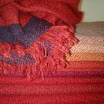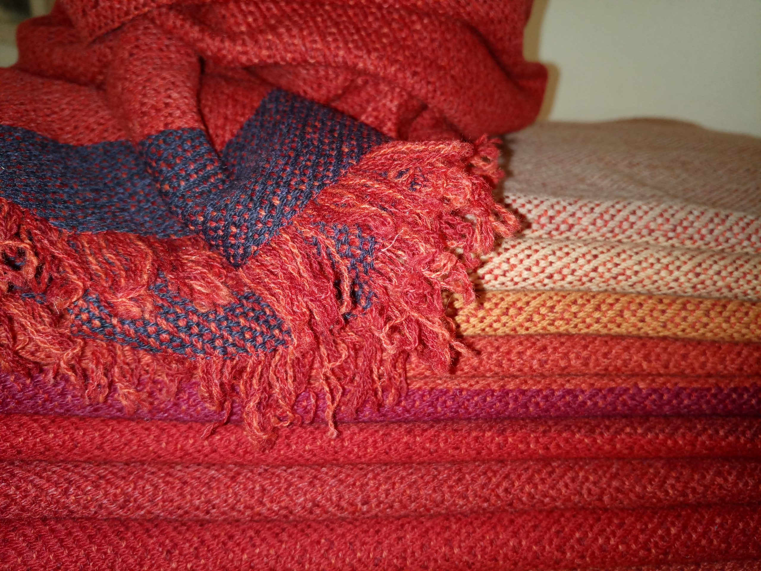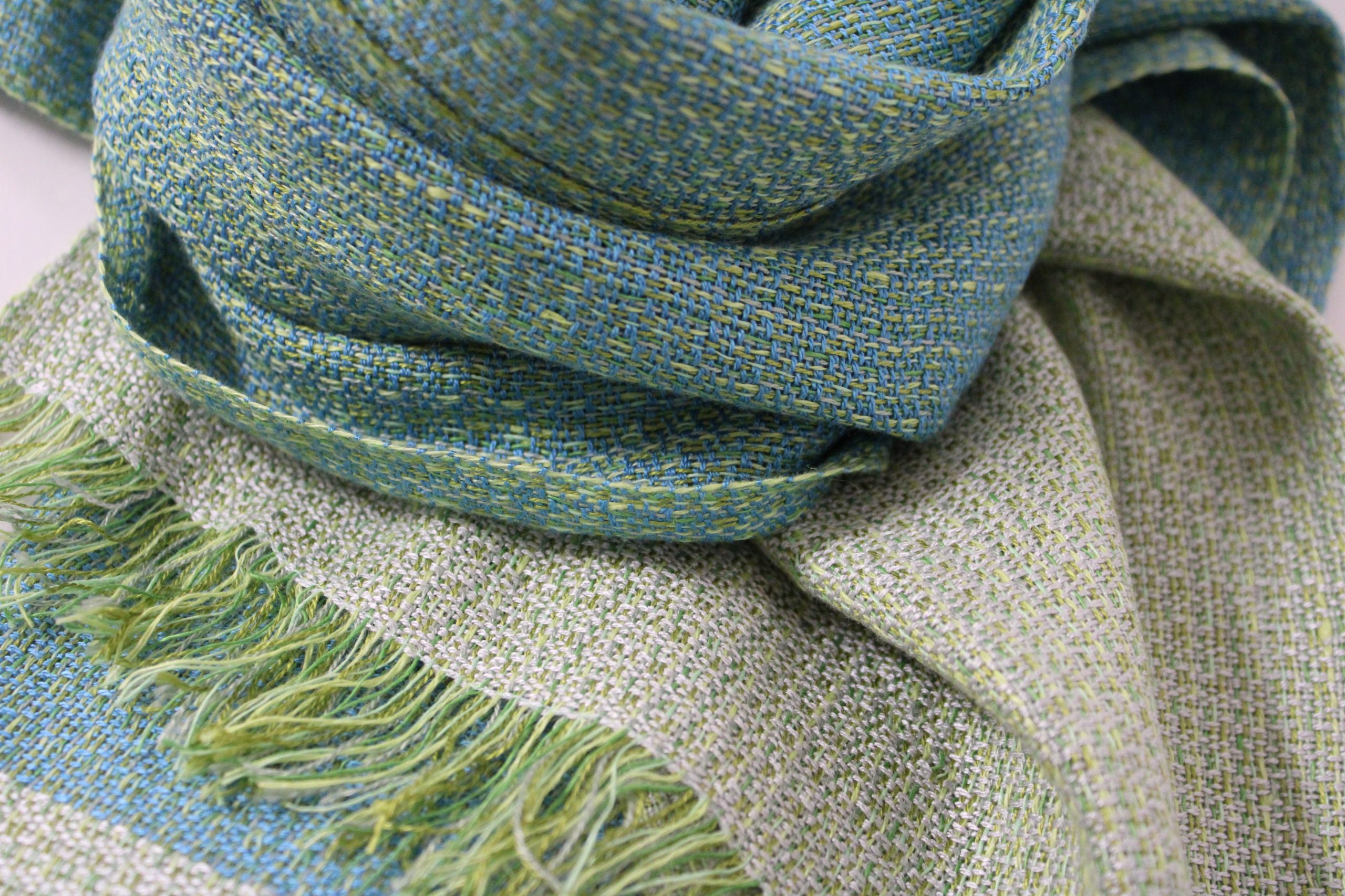 Die Schals und Wolltücher sind in jeder Kollektion Einzelstücke und variieren immer etwas in der Zusammenwirkung der Farben mit der Struktur und dem Material. Die Materialien sind in der Regel Leinen, Kammgarn (feine Wolle), Kaschmir und/oder Seide. Die Garne beziehe ich aus verschiedenen Ländern, wobei ich mich nach den Qualitäten und Spezialitäten der Länder richte. Sie sind meistens sehr fein und die entstehenden Gewebe leicht und weich.