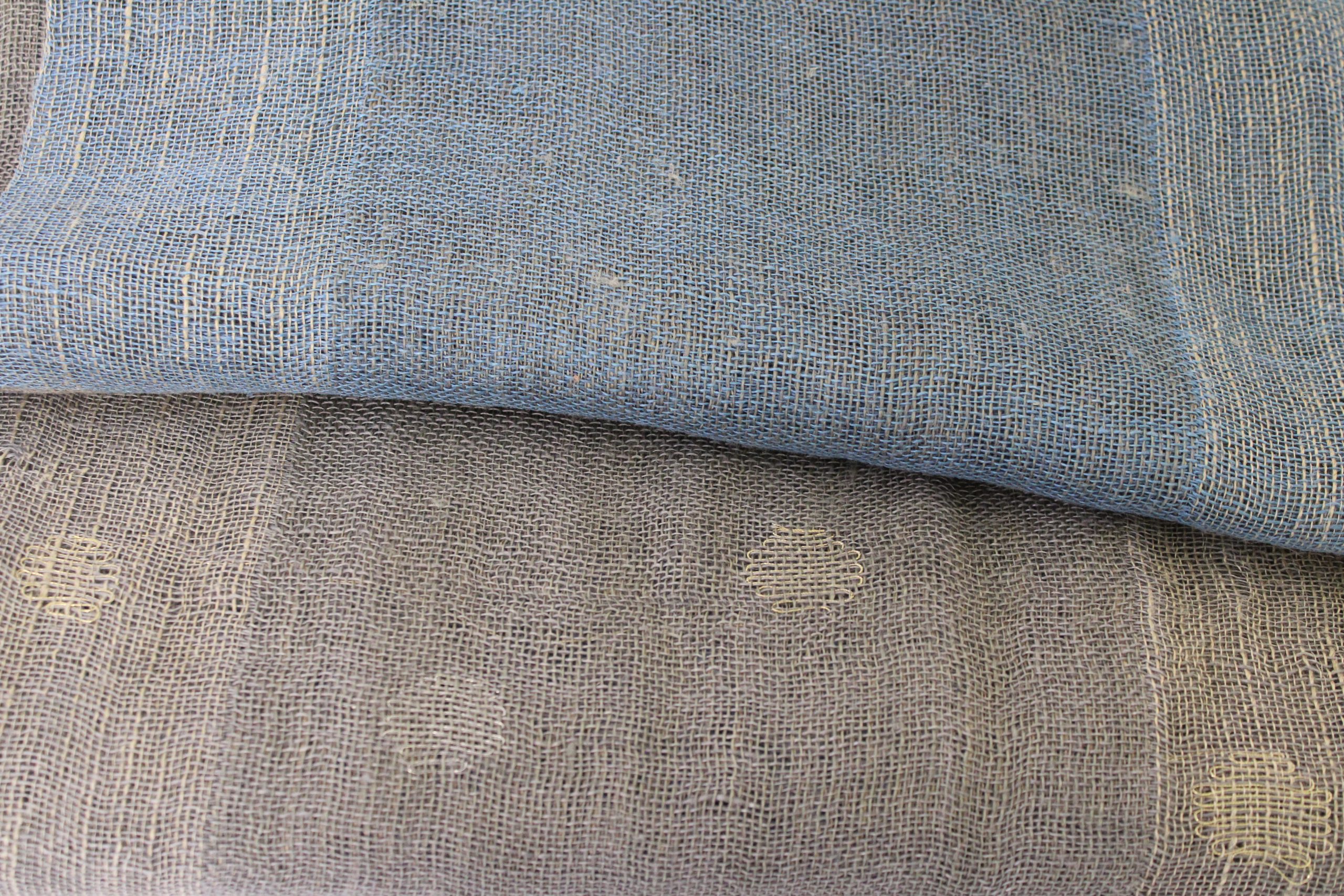 Die Leinen-und Bambusschals sind oft transparente Gewebe. Die Seiden-, Kaschmir- und Wolltücher bieten eine leichte, wärmende Hülle und können gleichzeitig als Schmuck getragen werden. Die handgewebten Schals sind nicht nur Gebrauchsstücke, sie passen zu feierlichen Momenten oder heben den Alltag zu etwas Besonderem.